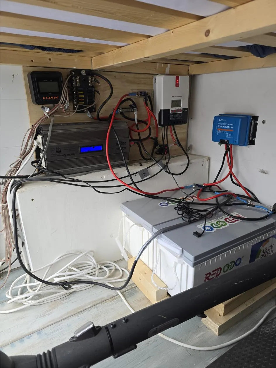 My van is fully insulated, has a kitchen, a bathroom, and a full solar system. When I was rebuilding my old van, I bought two lithium batteries from another company. The batteries weren't working properly, and I had to return them and got my money back.
