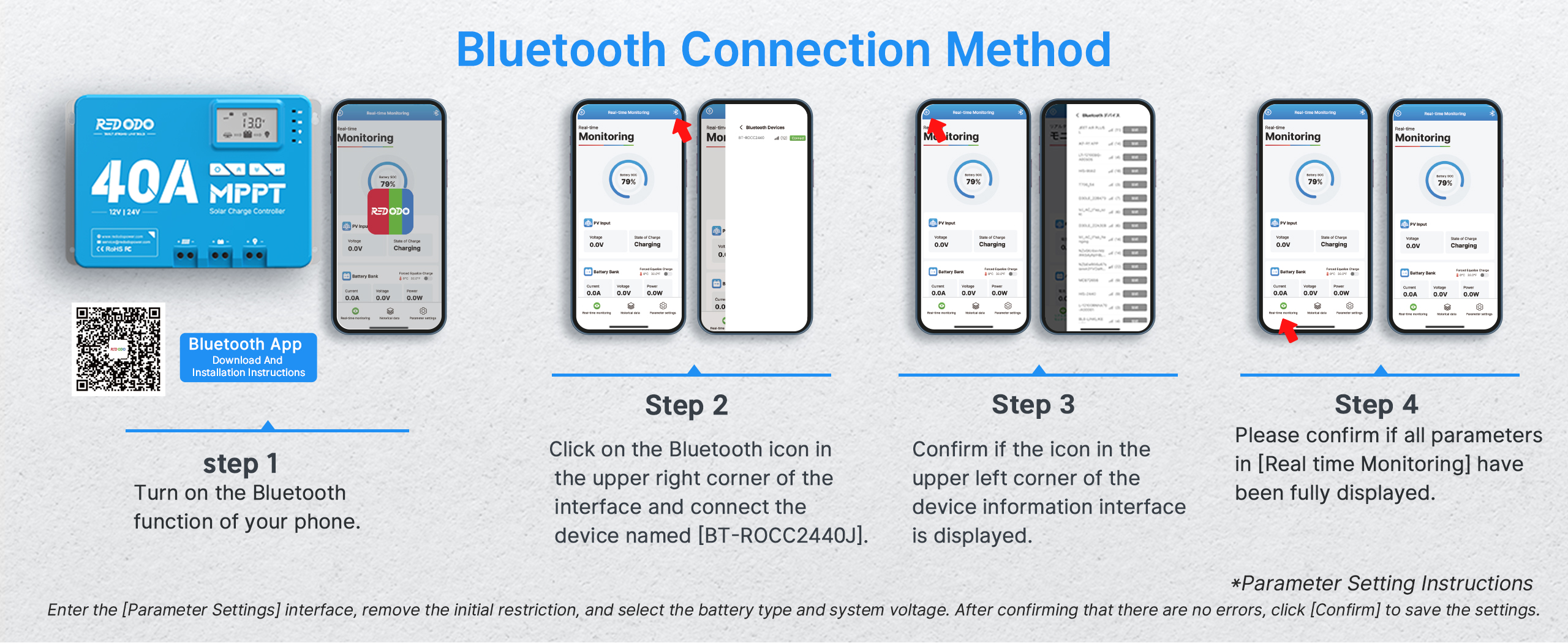 Redodo 40A MPPT Solar Charge Controller by phone